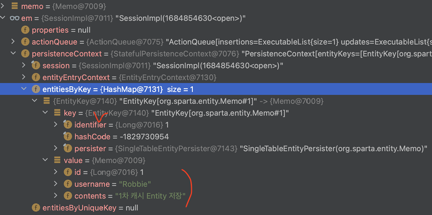 System.out.println("memo#1 Entity 다시 조회");