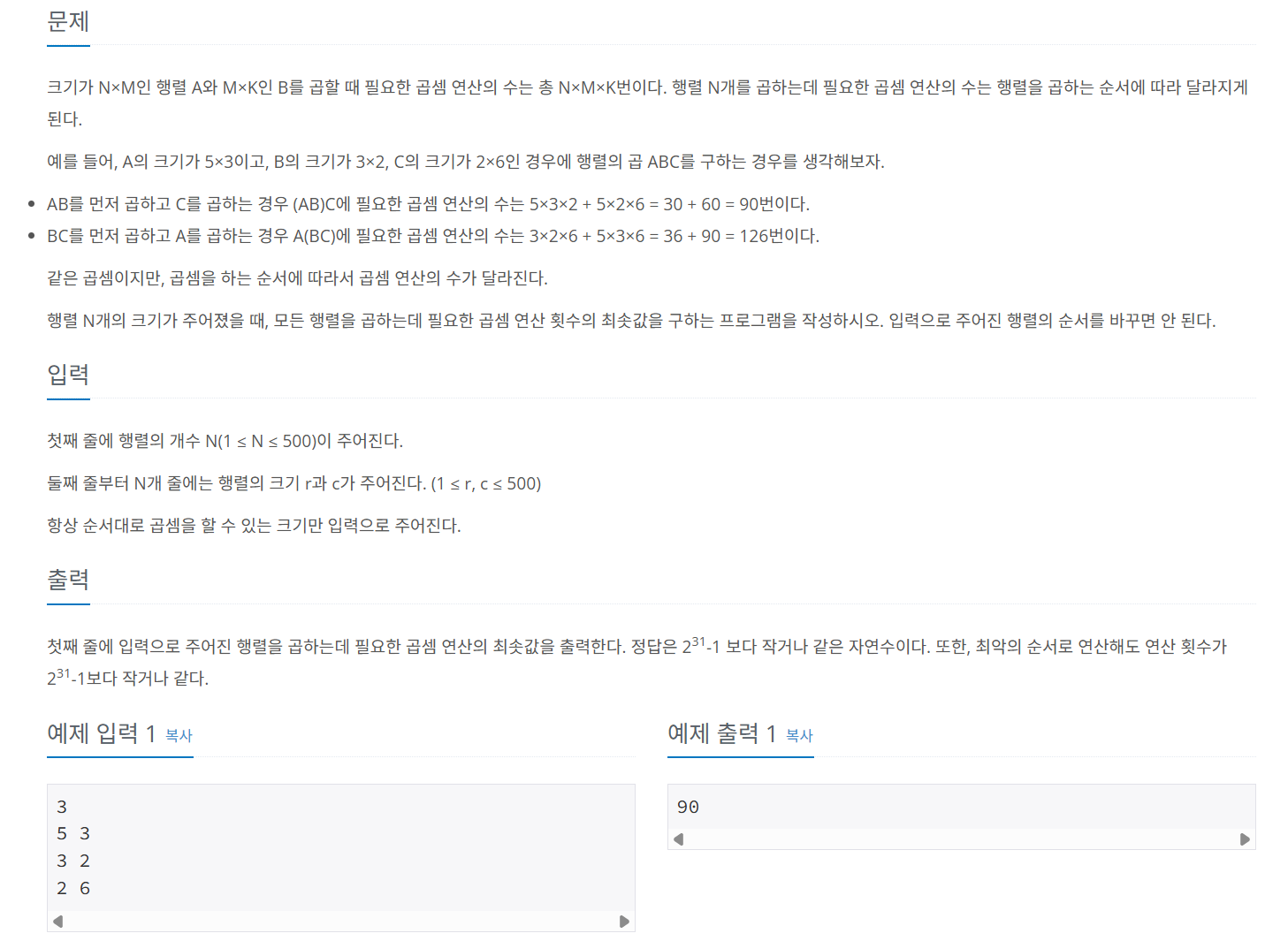 문제 094 행렬 곱 연산 횟수의 최솟값 구하기