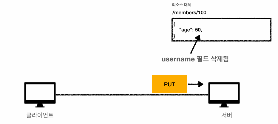 이는 PUT 메서드는 리소스를 완전히 대체한다는 점이다.
