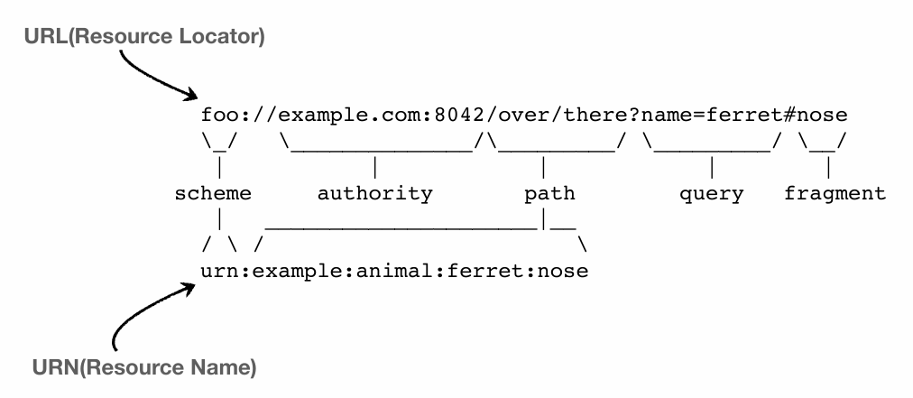 URI(Uniform Resource Identifier)는 리소스를 식별하는 통일된 방식(Uniform)과 자원(Resource, URI로 식별할 수 있는 모든 것), 다른 항목과 구분하는데 필요한 정보(Identifier)를 의미한다. URI는 로케이터(Locator), 이름(Name) 또는 둘 다 추가로 분류될 수 있다.